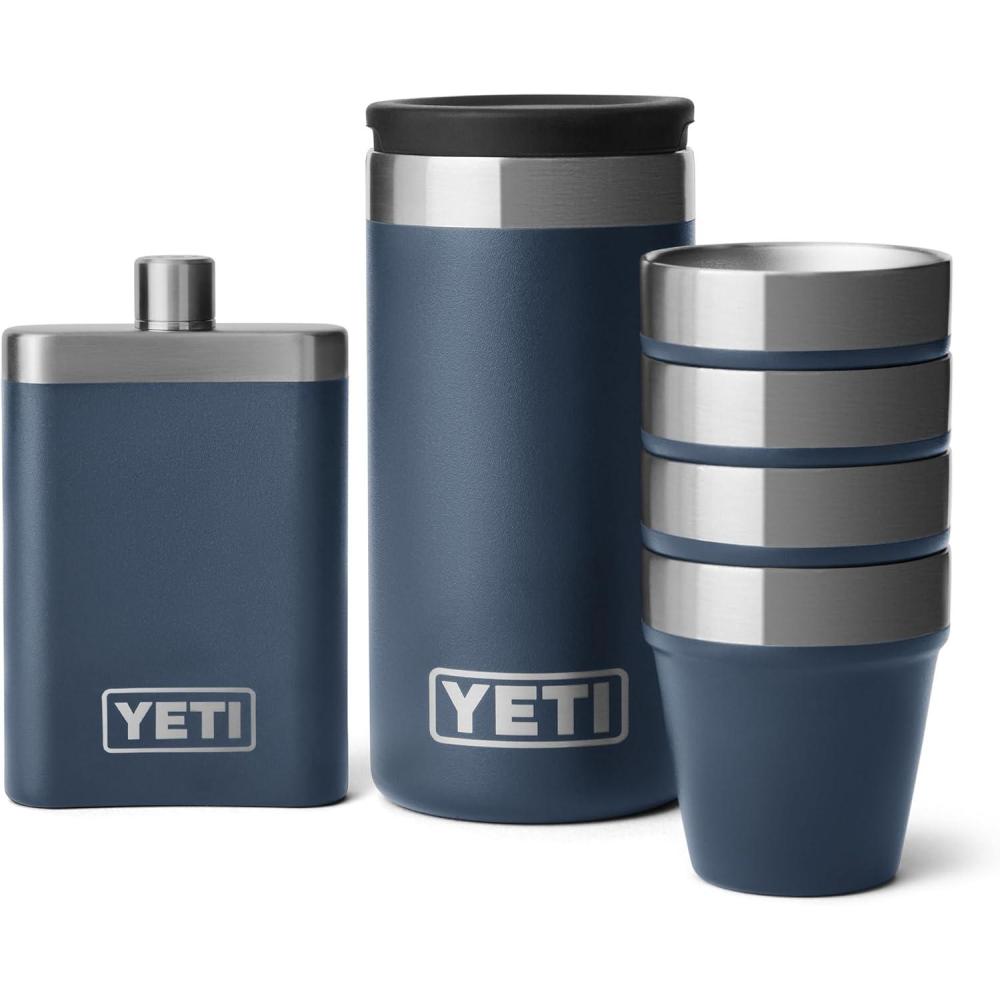 YETI 7 oz Flask and Funnel, Navy YETI Shot Glasses with Carrying Case, Set of 4, Navy