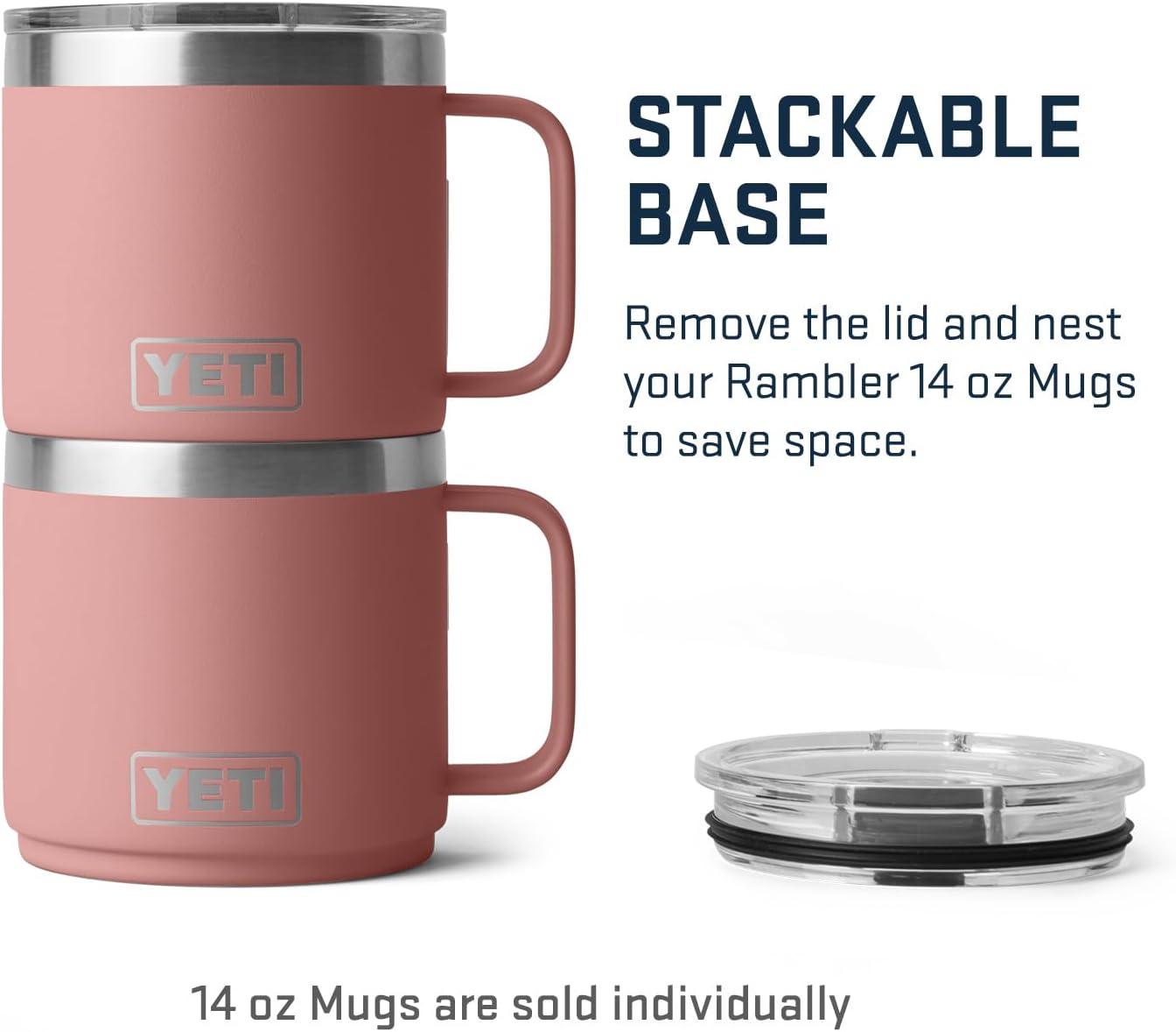 YETI Rambler 14 oz Stackable Mug, Vacuum Insulated, Stainless Steel with MagSlider Lid(Sandstone Pink)