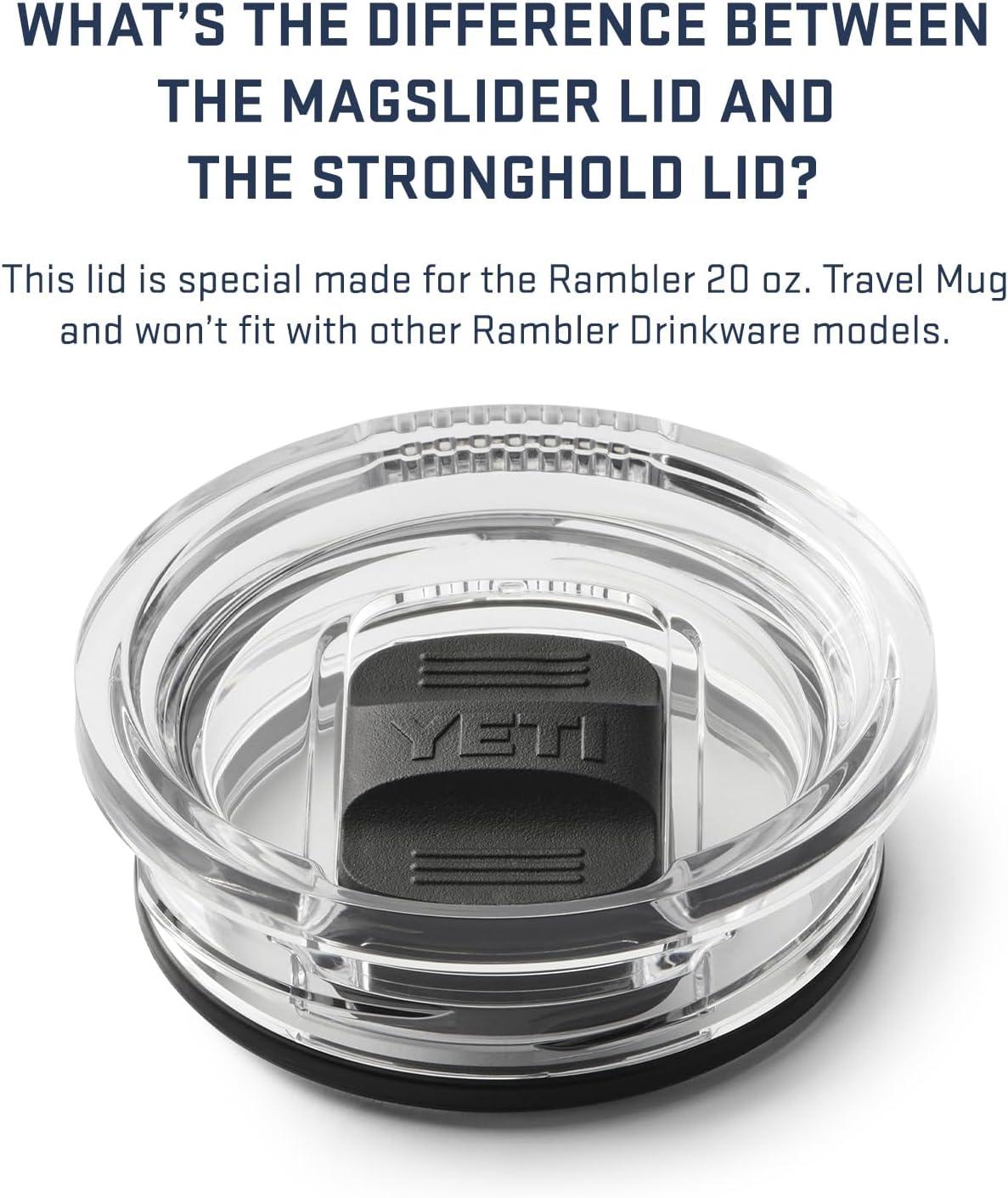 Please Note: The Travel Mug can only use the Stronghold Lid and the Stronghold Lid won’t fit other Rambler Drinkware models. The Travel Mug Stronghold Lid has 4 placement options and plays nice with both righties and lefties.