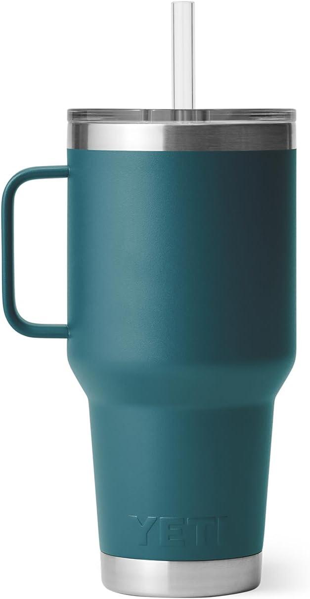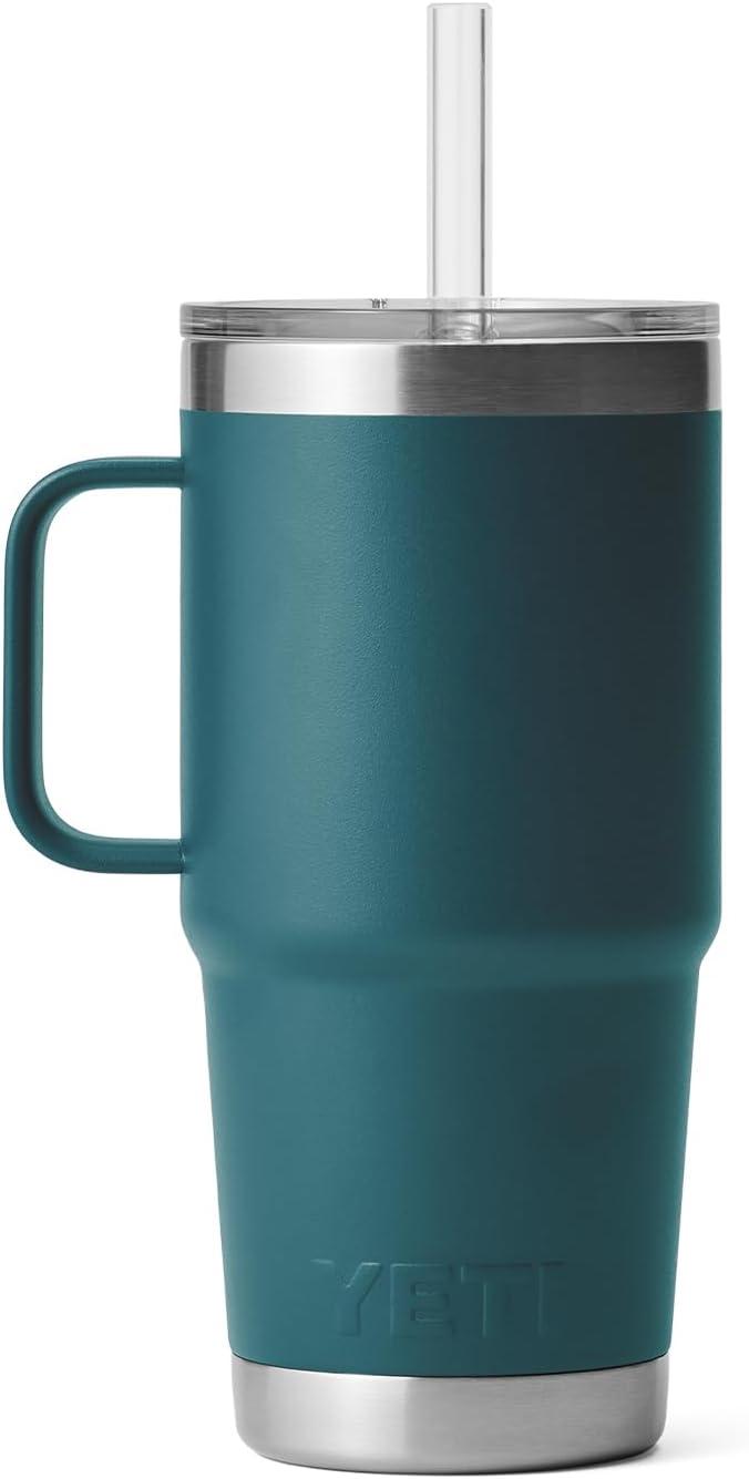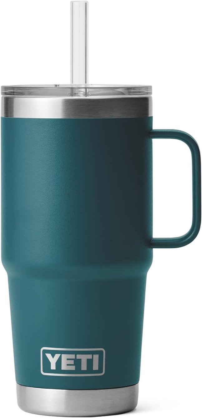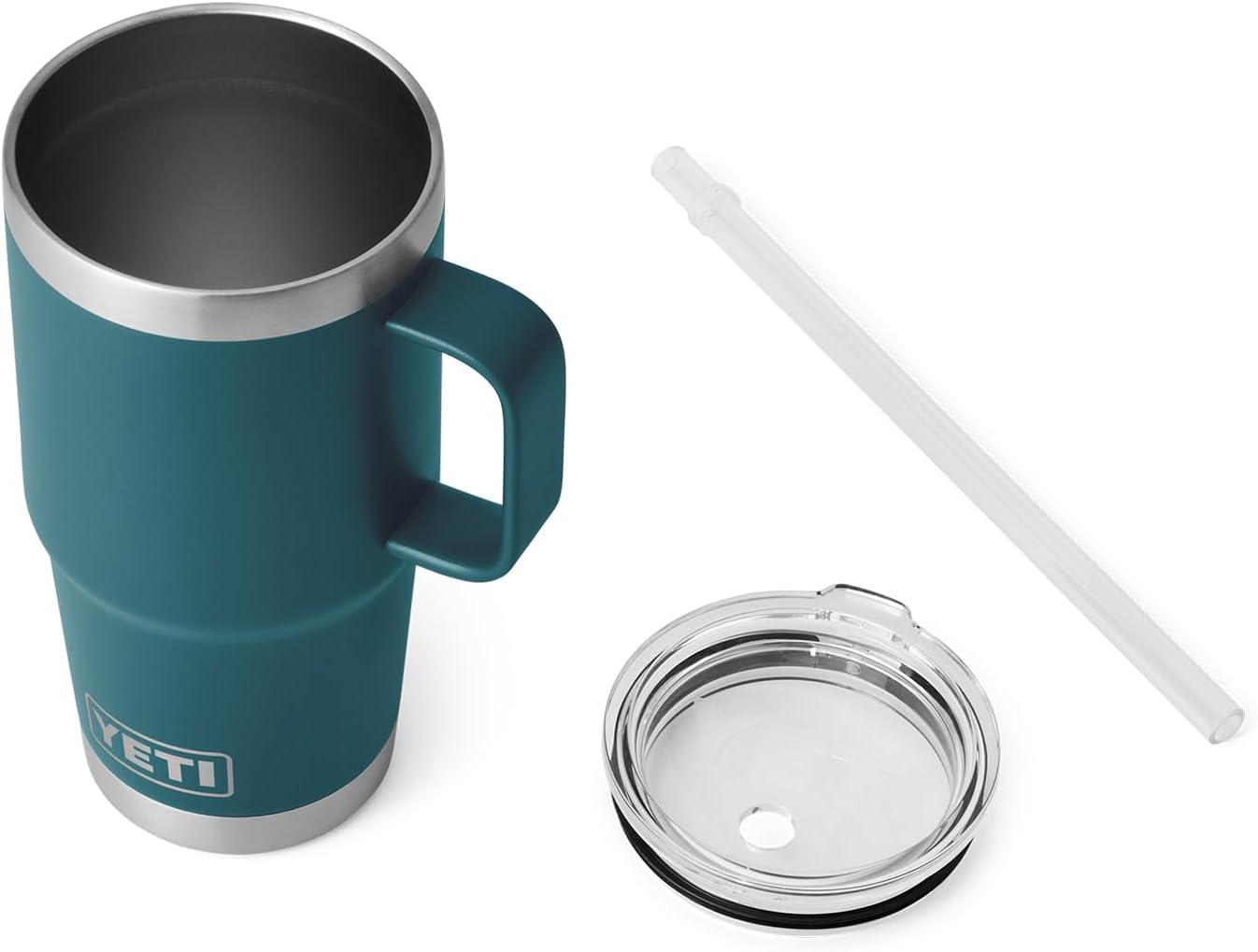YETI Rambler 25 oz Tumbler with Handle and Straw Lid, Travel Mug Water Tumbler, Vacuum Insulated Cup with Handle, Stainless Steel, Rescue Red(Agave Teal)