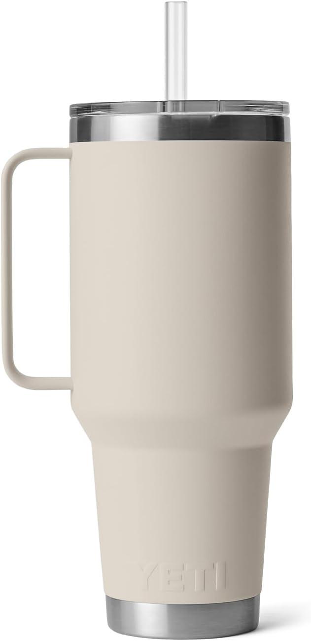 YETI Rambler 25 oz Tumbler with Handle and Straw Lid, Travel Mug Water Tumbler, Vacuum Insulated Cup with Handle, Stainless Steel, Rescue Red(Cape Taupe)