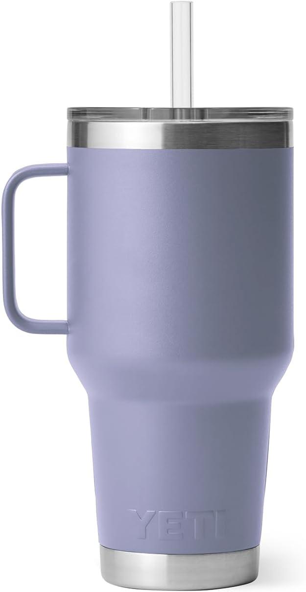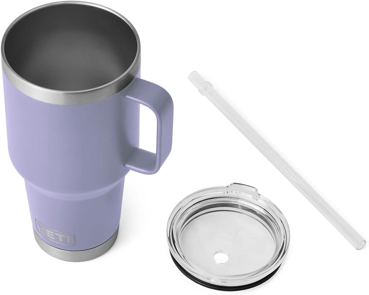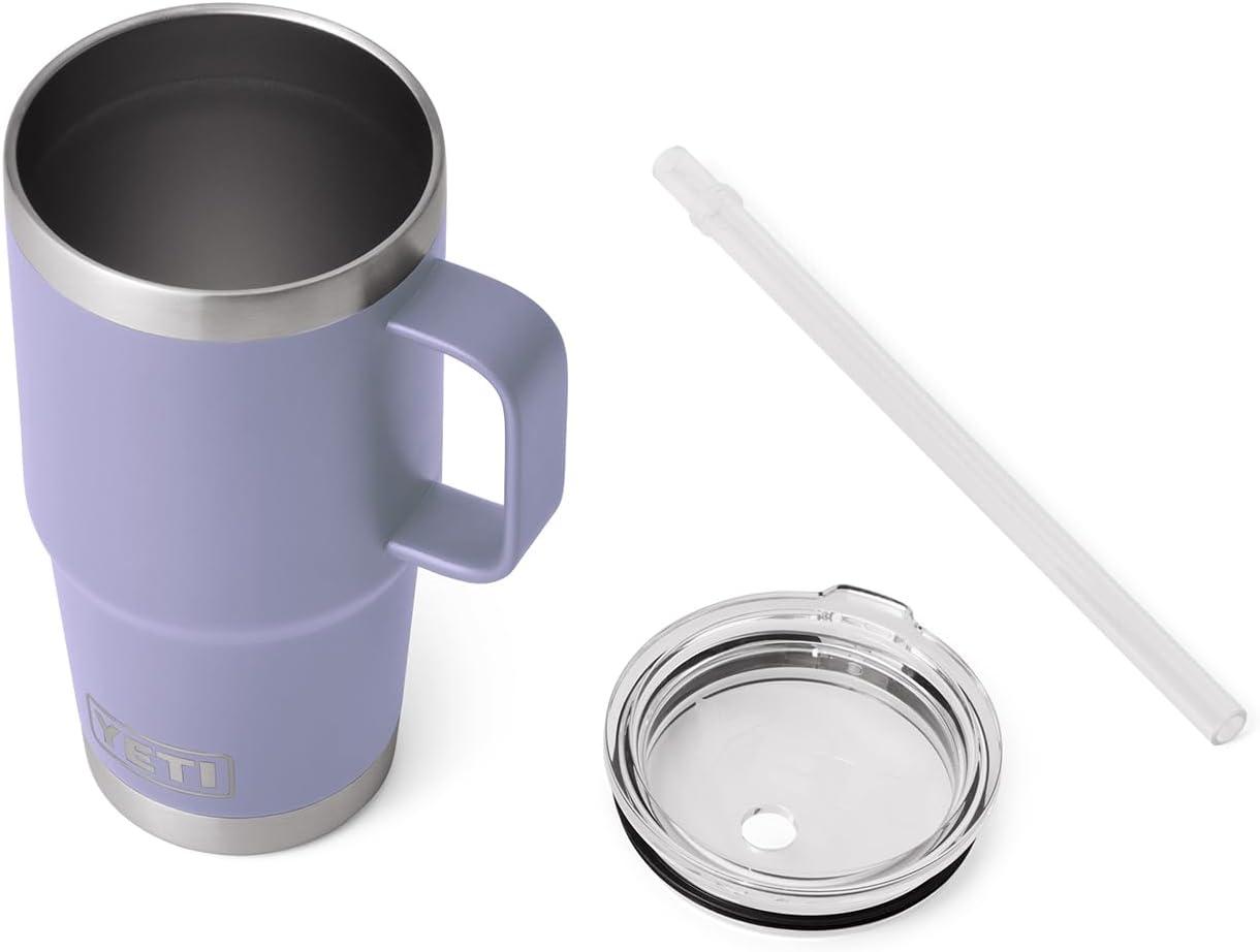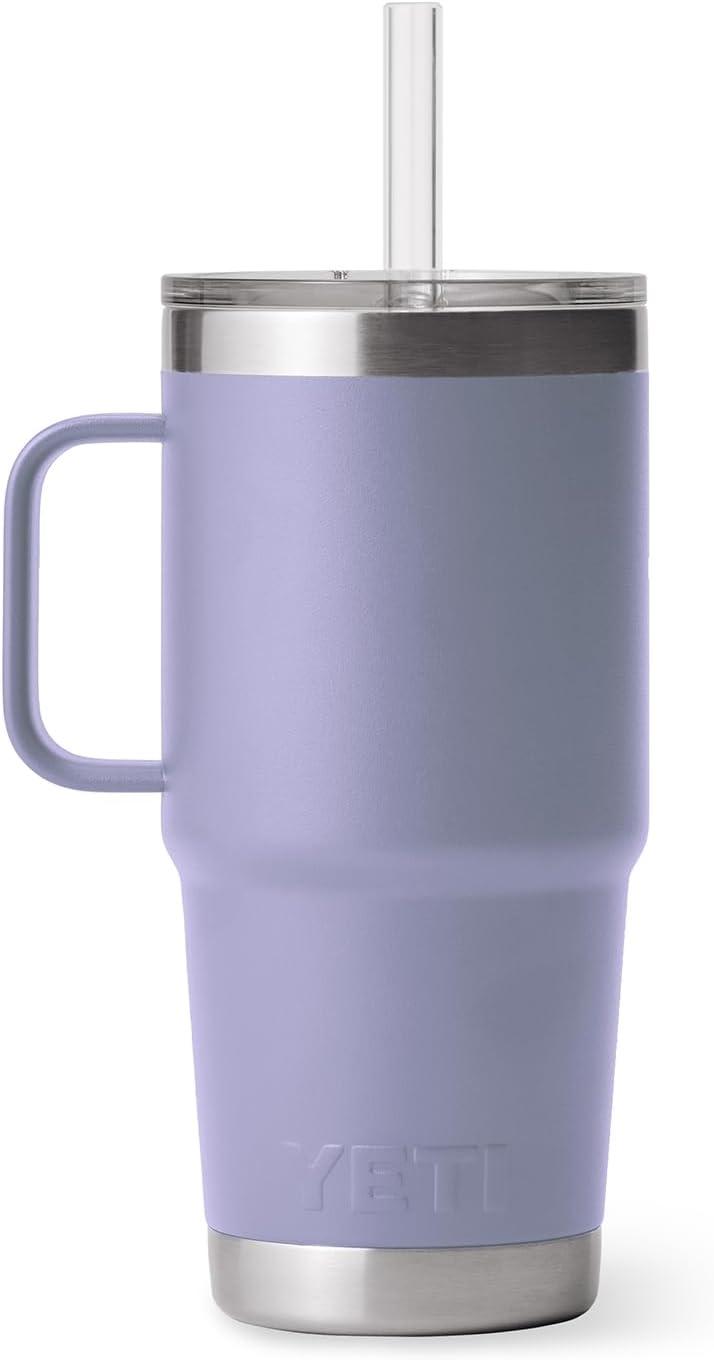 YETI Rambler 25 oz Tumbler with Handle and Straw Lid, Travel Mug Water Tumbler, Vacuum Insulated Cup with Handle, Stainless Steel, Rescue Red(Cosmic Lilac)