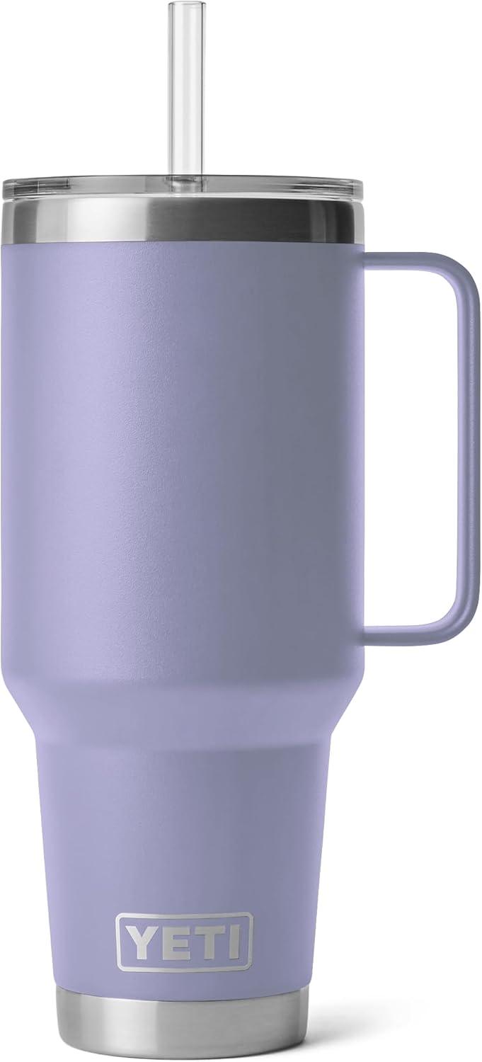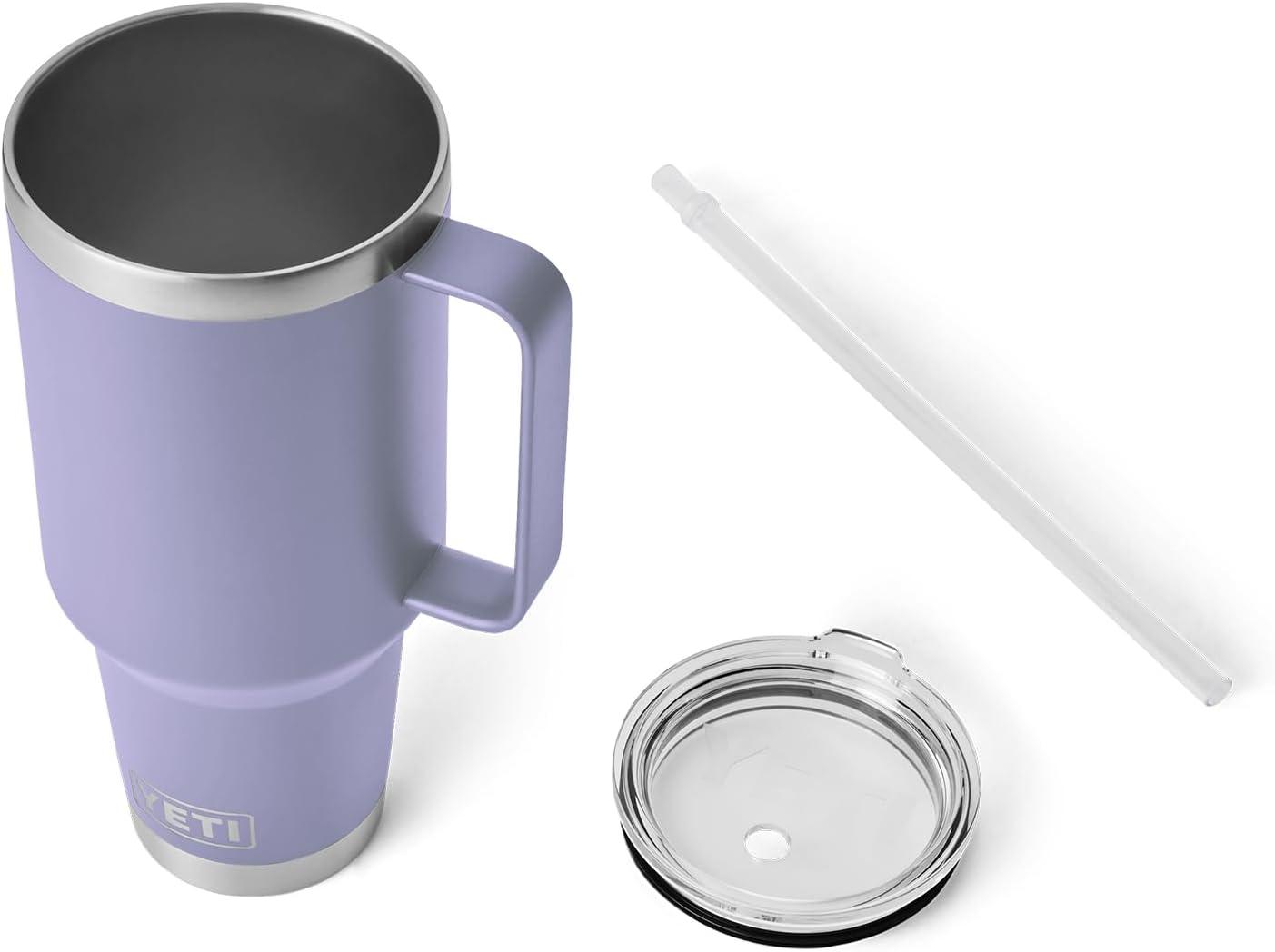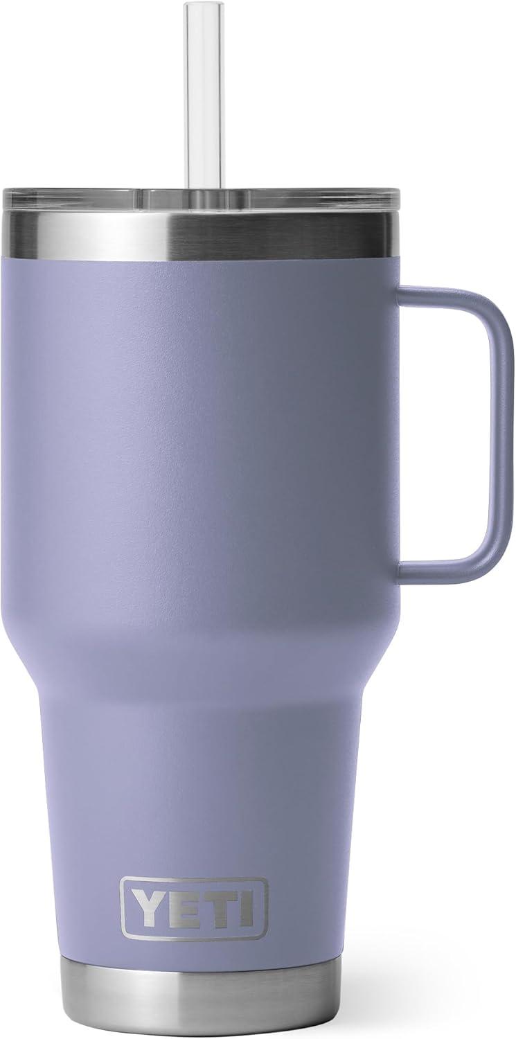 YETI Rambler 25 oz Tumbler with Handle and Straw Lid, Travel Mug Water Tumbler, Vacuum Insulated Cup with Handle, Stainless Steel, Rescue Red(Cosmic Lilac)