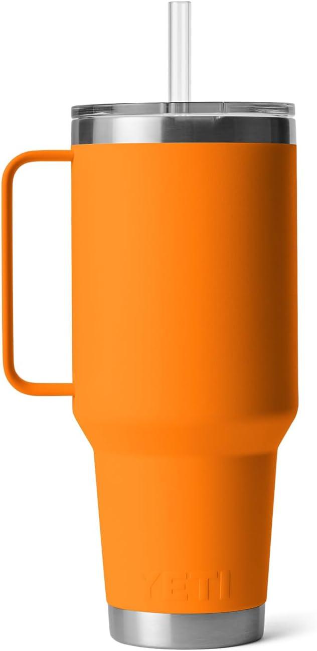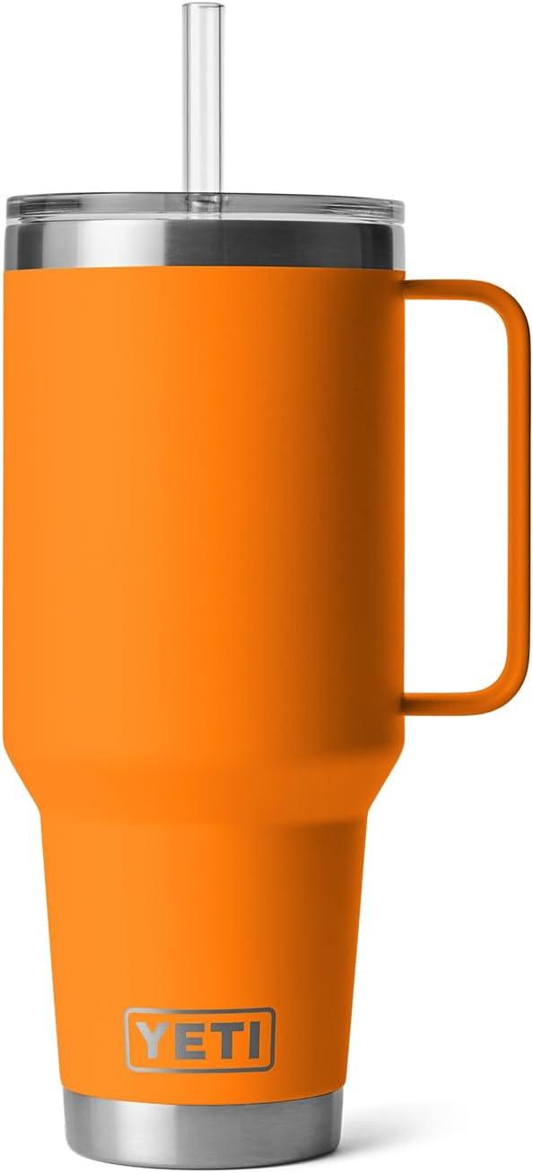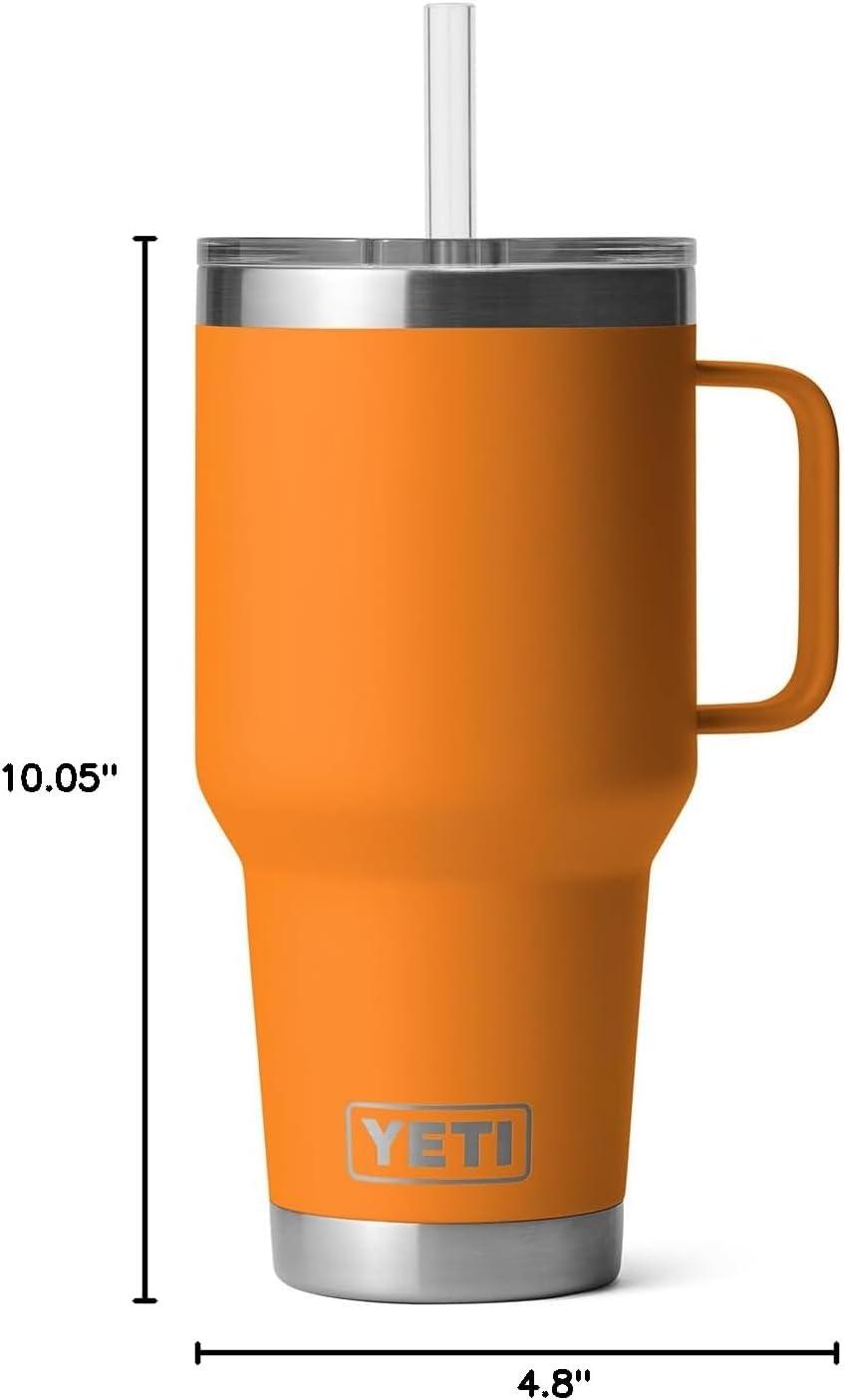 YETI Rambler 25 oz Tumbler with Handle and Straw Lid, Travel Mug Water Tumbler, Vacuum Insulated Cup with Handle, Stainless Steel, Rescue Red(King Crab)
