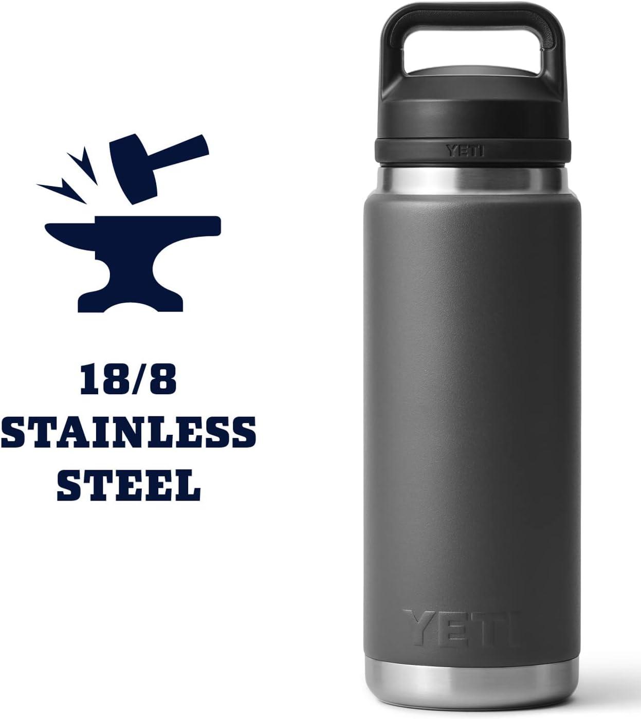 YETI Rambler 26 oz Bottle, Vacuum Insulated, Leakproof, Stainless Steel with Chug Cap(Charcoal)