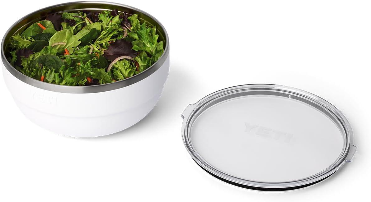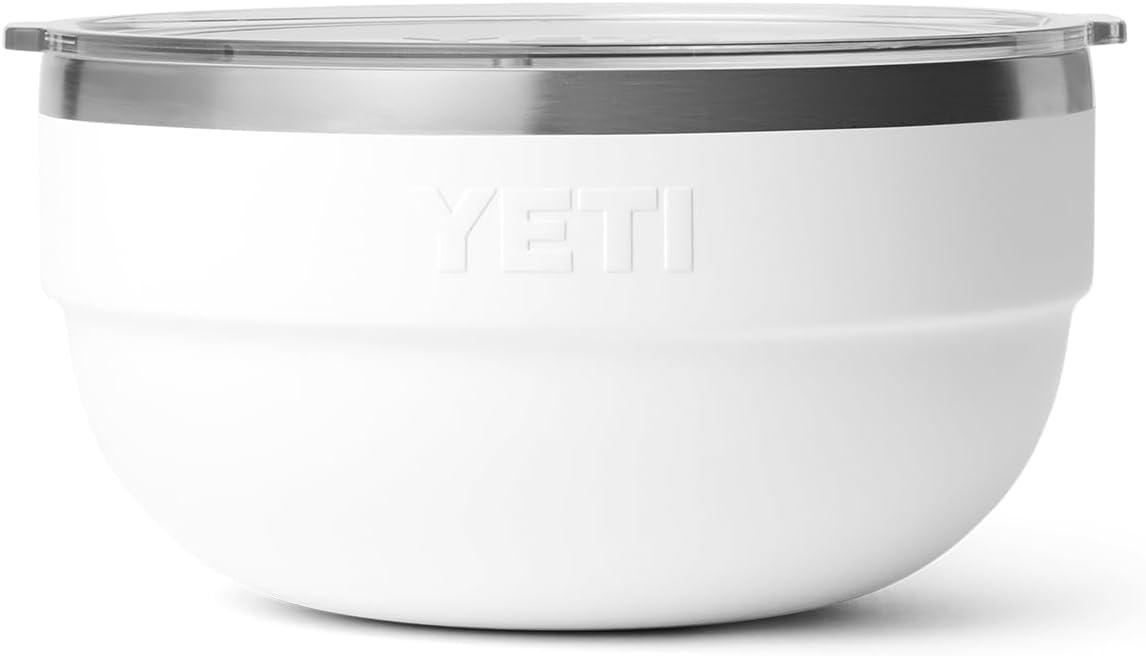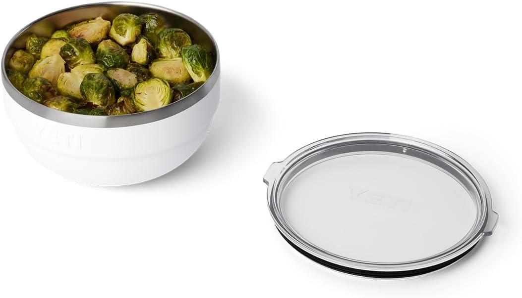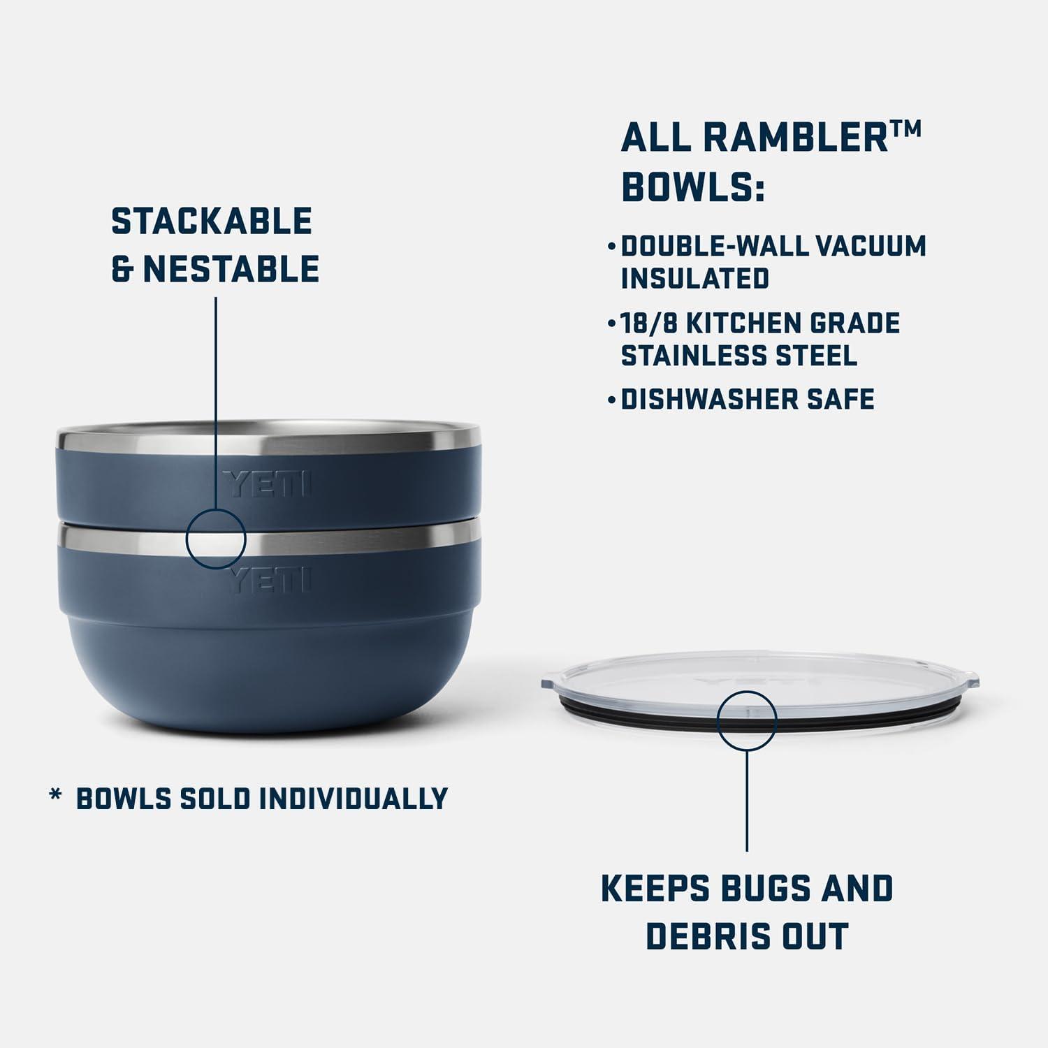 YETI Rambler Bowl, Vacuum Insulated, Stackable and Nestable Stainless Steel Bowl with Lid, 1 Quart, Navy(White)