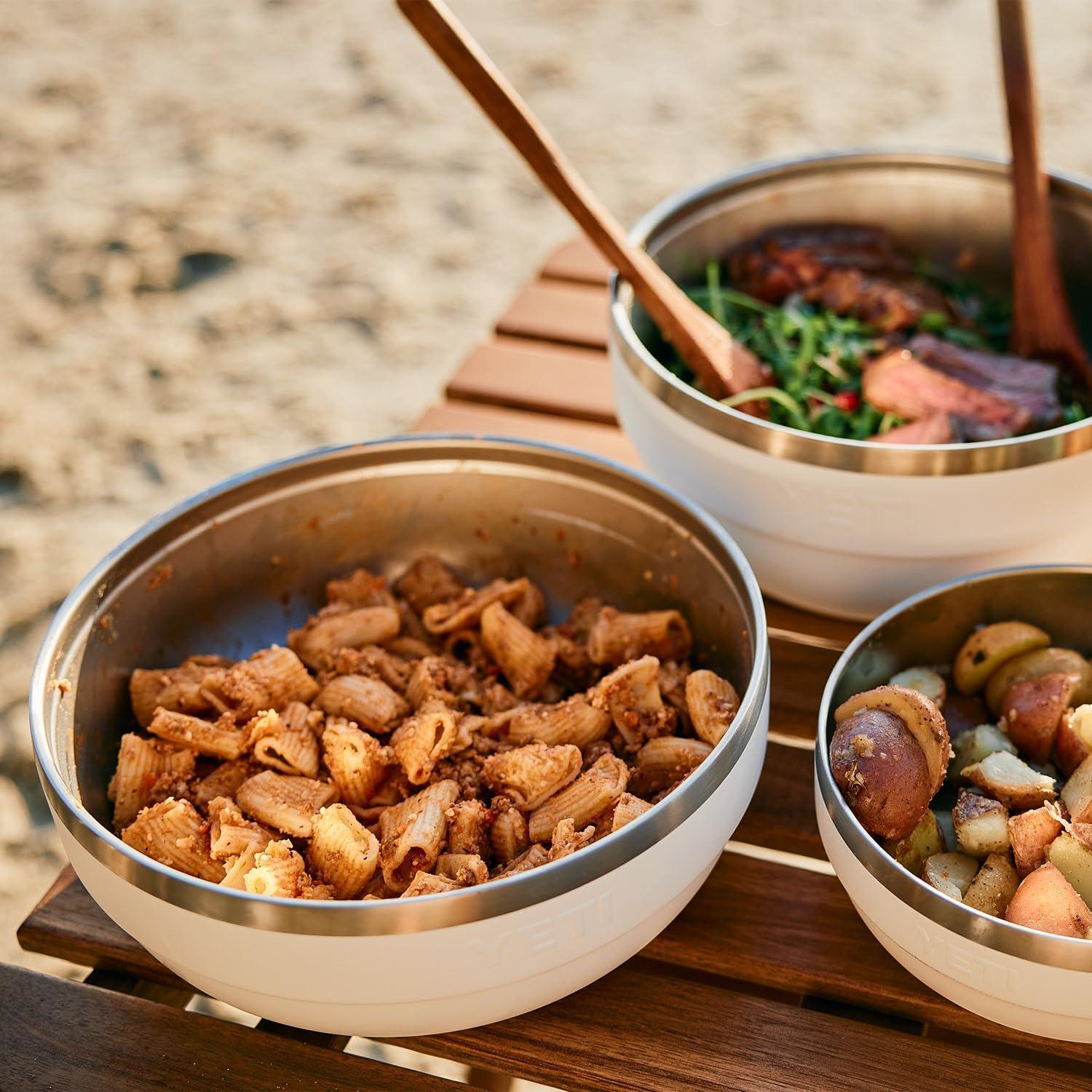 Three sizes of double-wall insulated bowls keep queso piping hot, and salads cool and crisp no matter where you feast